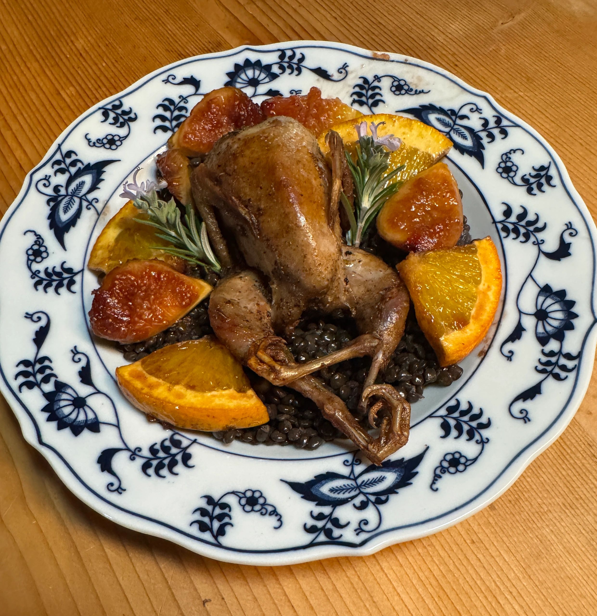 Holiday Quail with Figs and Oranges and Port Wine Sauce